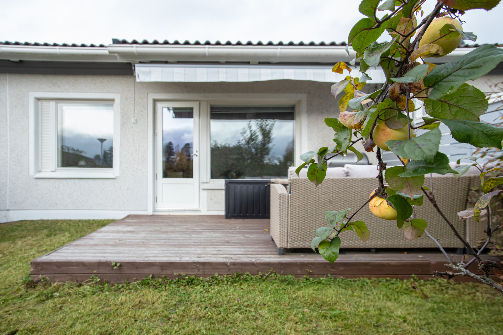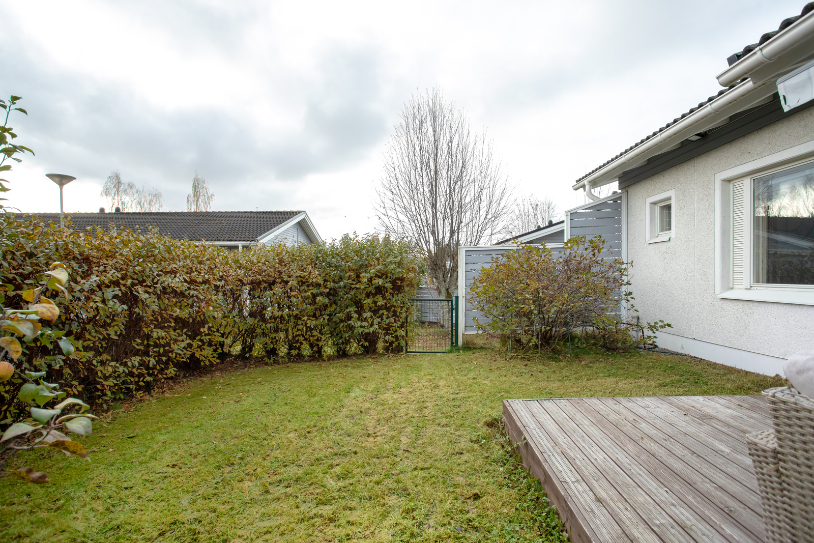 Detta välskötta radhus i ett plan erbjuder allt du behöver!