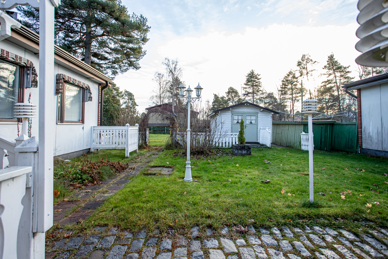 Pihalla on myös tilava varastotila. Lisäksi autotalli ja runsaasti säilytystilaa.