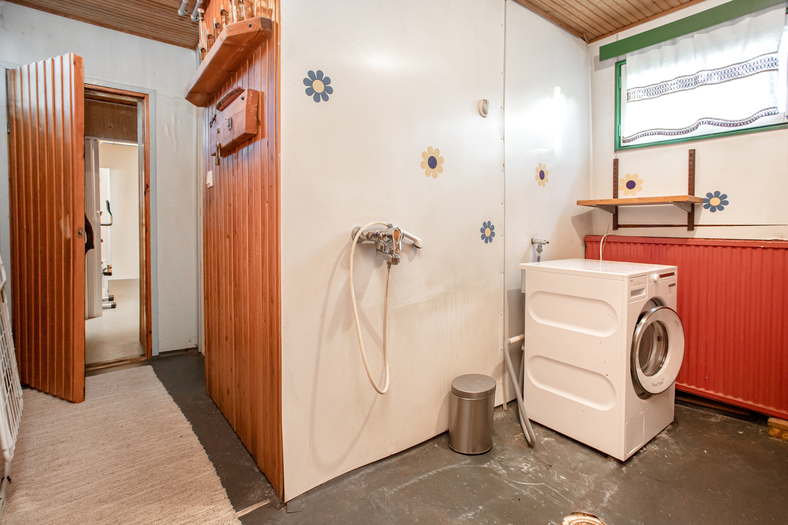 Dessutom finns det ett garage och gott om förvaringsutrymme.