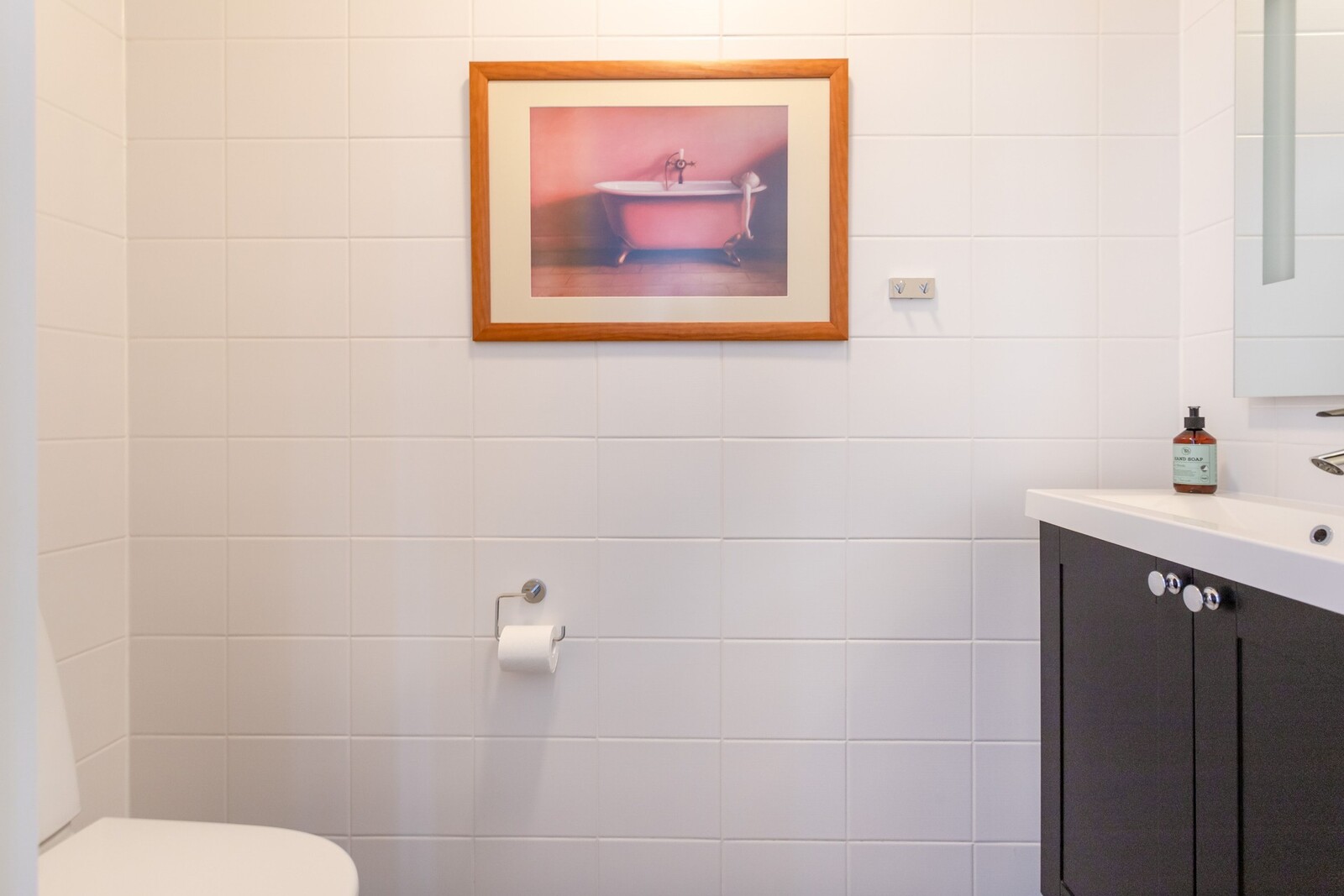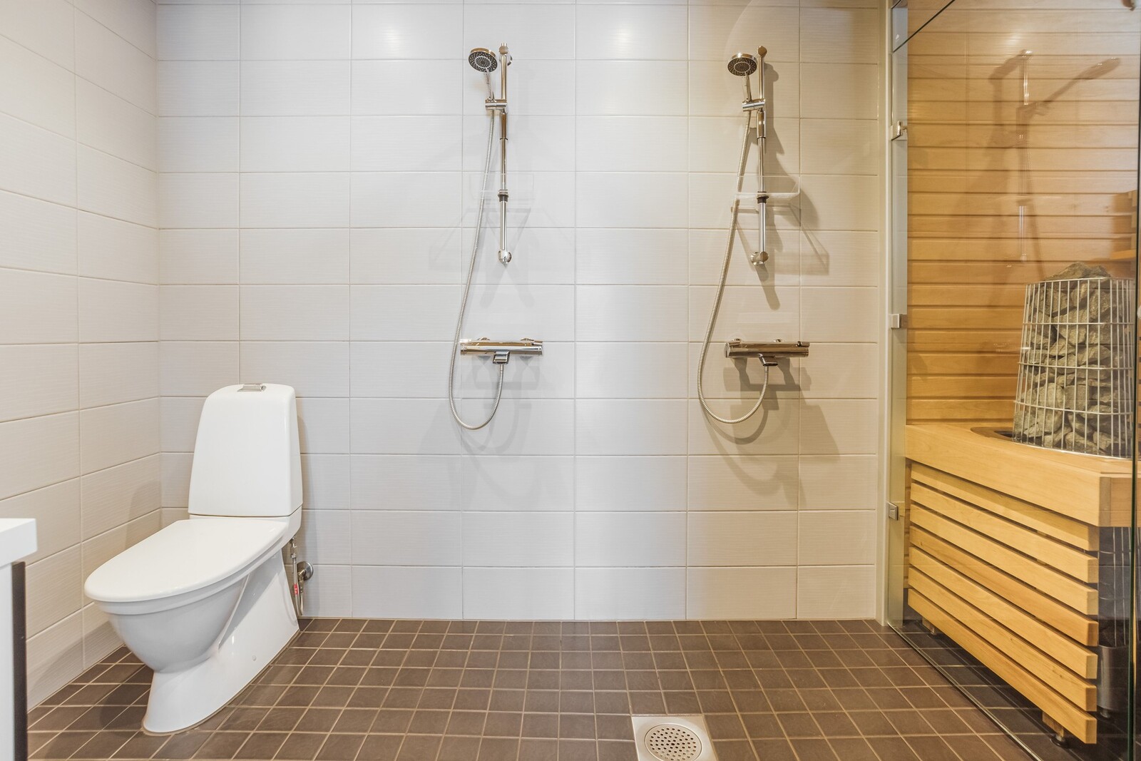 Grovköket har egen utgång. Det finns också en bastu och ett tvättrum i samma utrymme.
