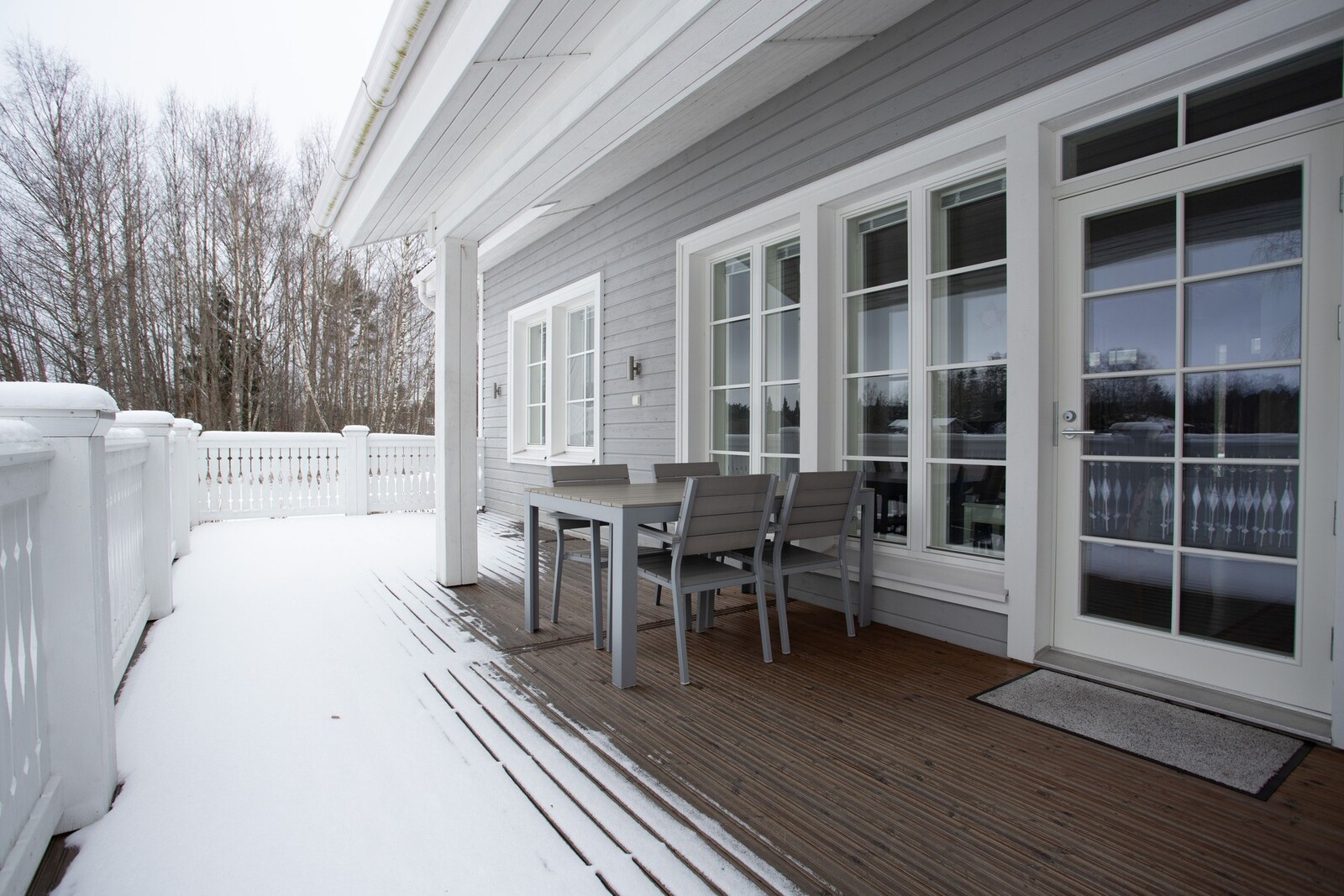 Keittiön jatkeena on tilava ruokailutila ja avara olohuone, jossa olemassa myös takka. Olohuoneesta on käynti suurelle terassille, joka toimii oivallisena paikkana kesäjuhlien järjestämiseen tai päivän päätteeksi rentoutumiseen.