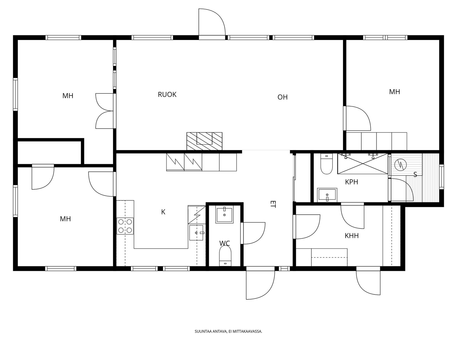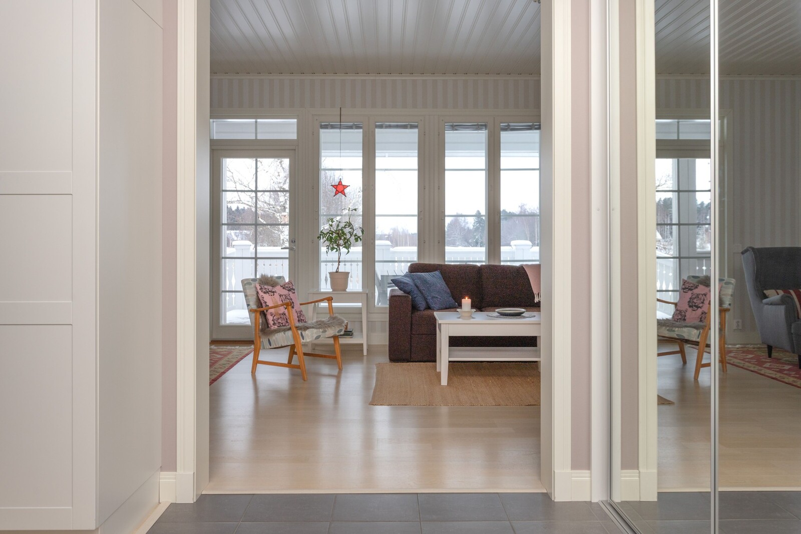 Huonekorkeus on 280 cm, mikä antaa tiloille tilaa ja valoa